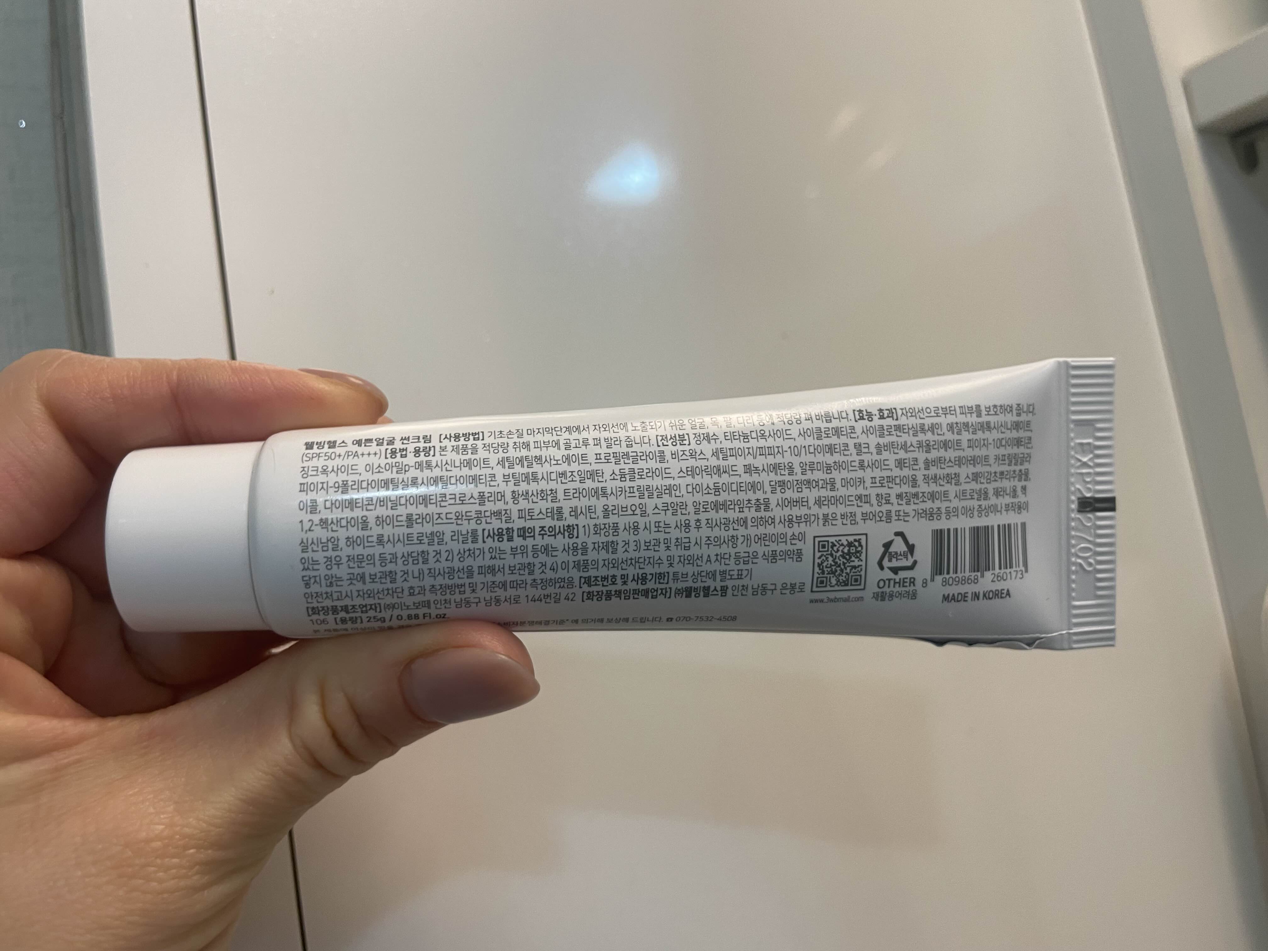 튜브 안에 선크림을 손등에 올려봅니다.